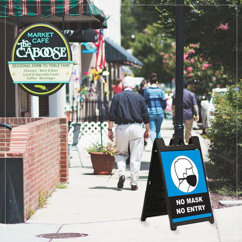 - Mini – Slim design for narrow sidewalks or walkways. Attach frame sign with double-sided tape, Velcro or screws.